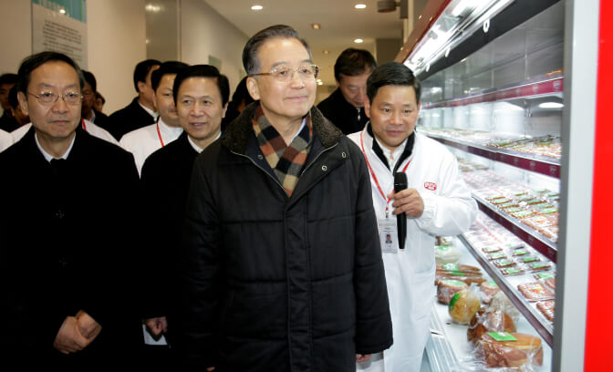 1月10日,中共中央政治局常委、國務(wù)院總理溫家寶一行視察、參觀(guān)江蘇雨潤食品產(chǎn)業(yè)集團有限公司總部工業(yè)園。