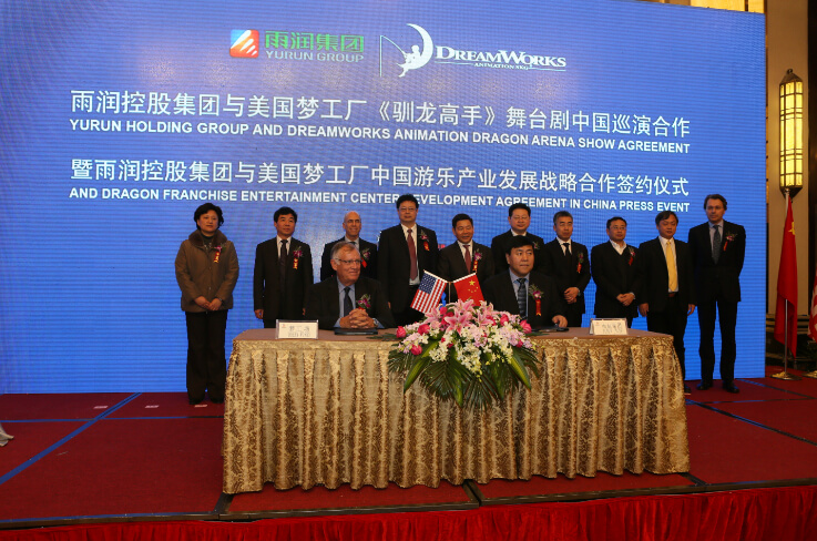1月14日,雨潤與美國“夢(mèng)工廠(chǎng)”在南京簽署全面戰略合作協(xié)議,獨家引進(jìn)真人舞臺劇《馴龍高手》LIVE秀,拉開(kāi)進(jìn)軍文化產(chǎn)業(yè)的序幕。